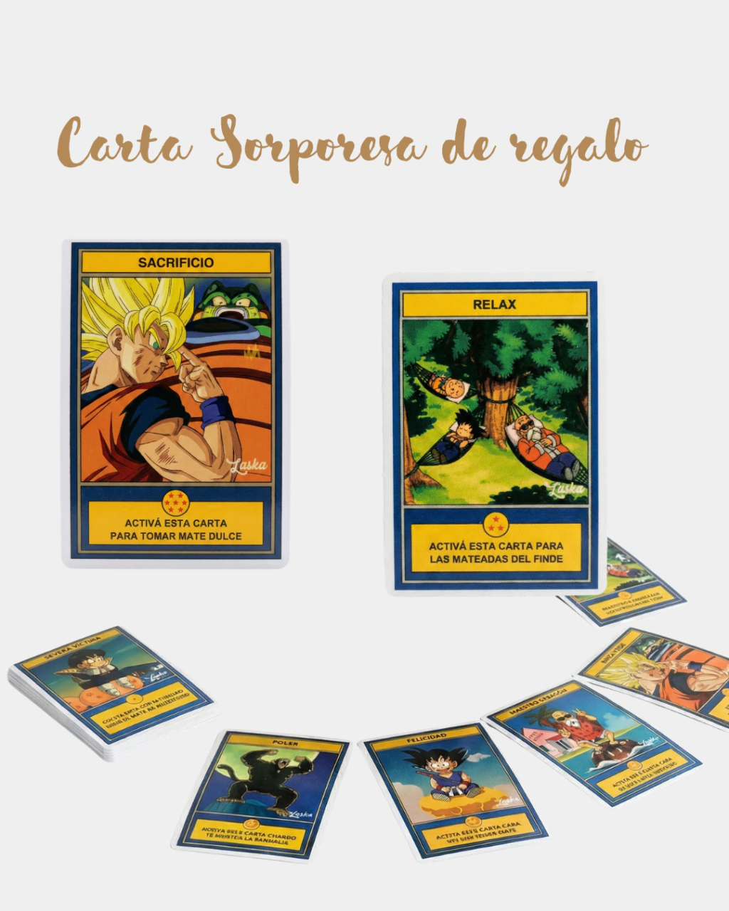 Set inspirado en la estética clásica de Dragon Ball: naranja intenso y logos icónicos.